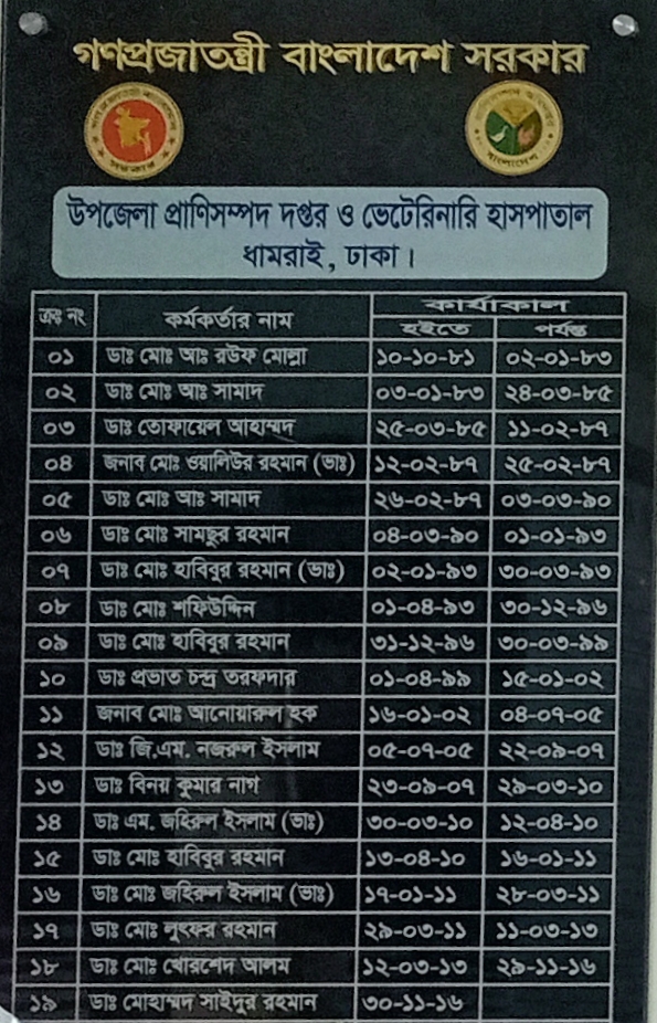 | ১৬ | ডাঃ এম. জহিরুল ইসলাম (ভারপ্রাপ্ত) | ১৭.০১.২০১১ | ২৮.০৩.২০১১ |